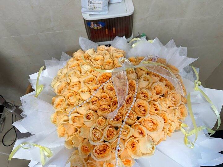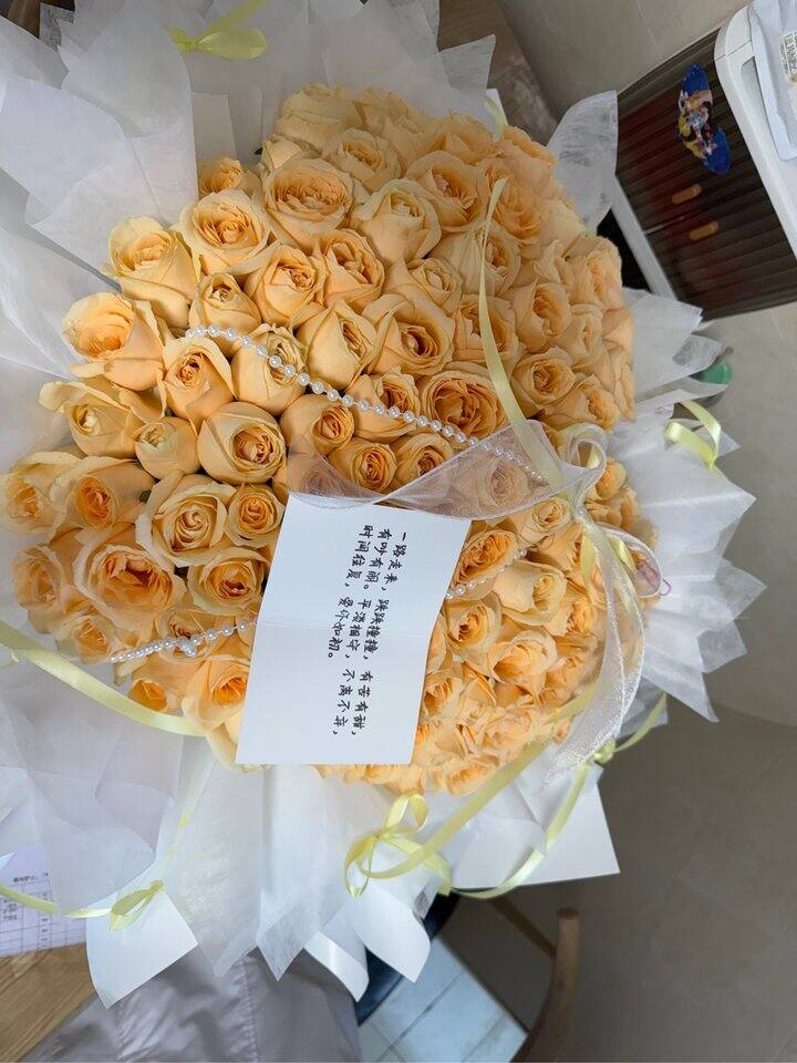 记录下,今天上班的时候,领导爱人给她点了花,我和另一个姐姐:好幸福啊,羡慕! 然后我去送资料,打开手机发现他给我发了红包,撤回一例红眼病。跟他说我们还在说最后一次收到99朵是婚前,结婚后就没收到花了 然后下午刚刚睡醒就接到美团电话,然后在群里看到同事拍的花,问是谁的。一大束,第二次收到99[哭笑] 本来想发的朋友圈文案:一束花的浪漫永不过时。