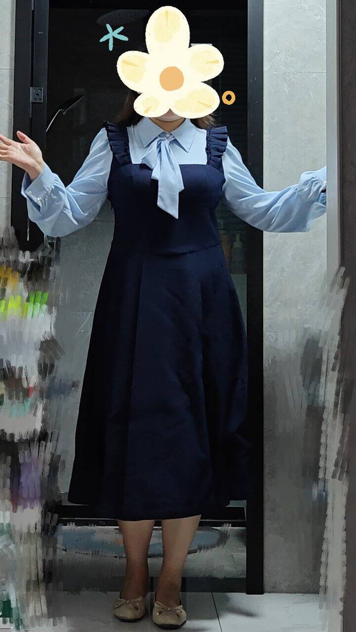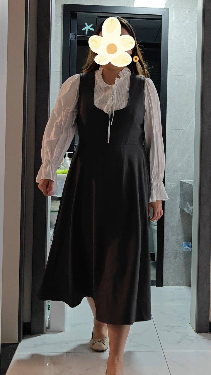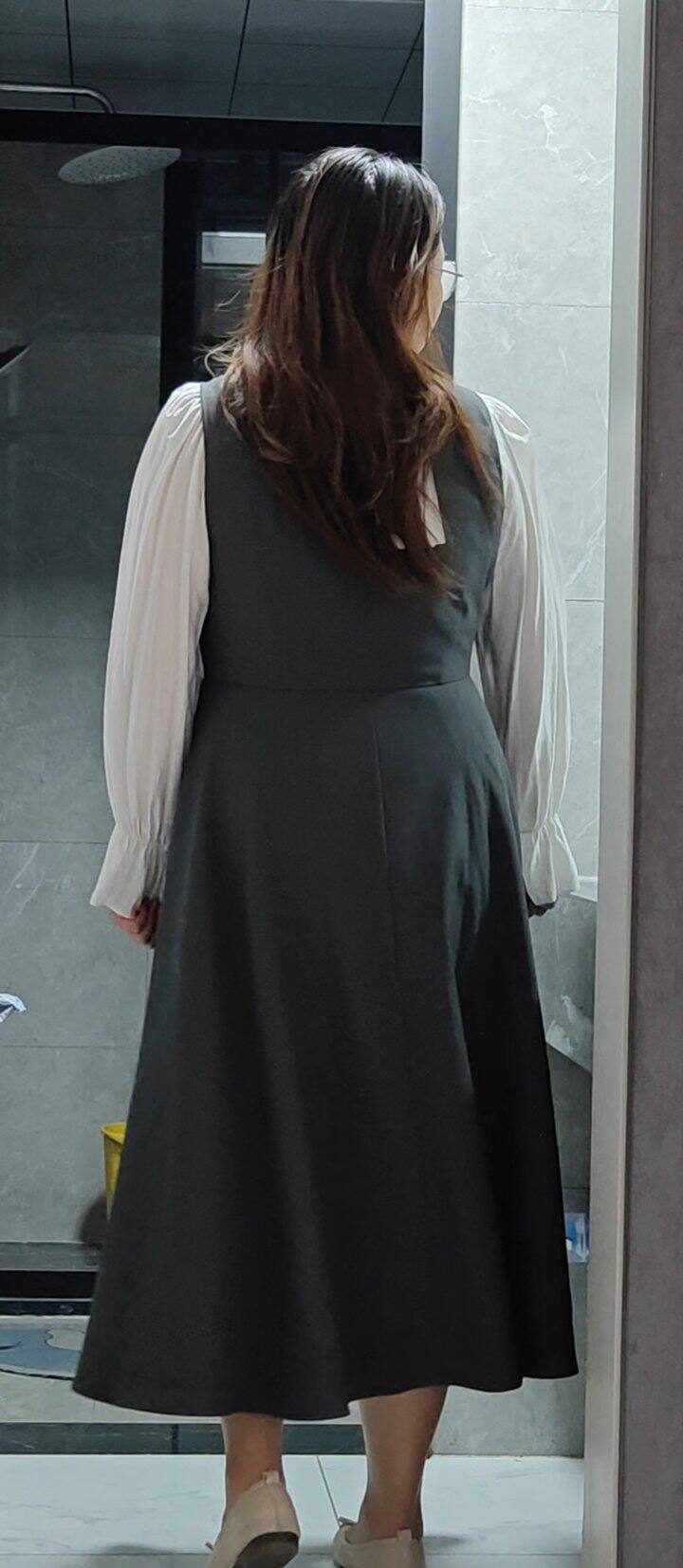 3 独 shu格雷灰背带裙,衬衫是自己的