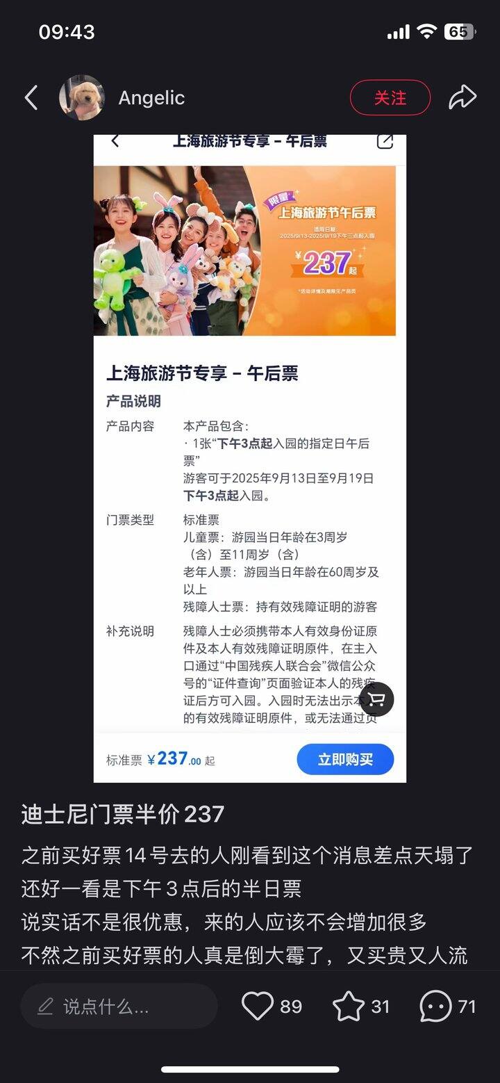 哇,上迪13日游有半价票!某种程度上考虑到现在上海的天气,其实我也推荐大家玩半天。。。不过估计应该人更多了[胖鹿捂脸]但玩个半天的项目其实也挺好,拍拍照看看烟花啥的也OK!