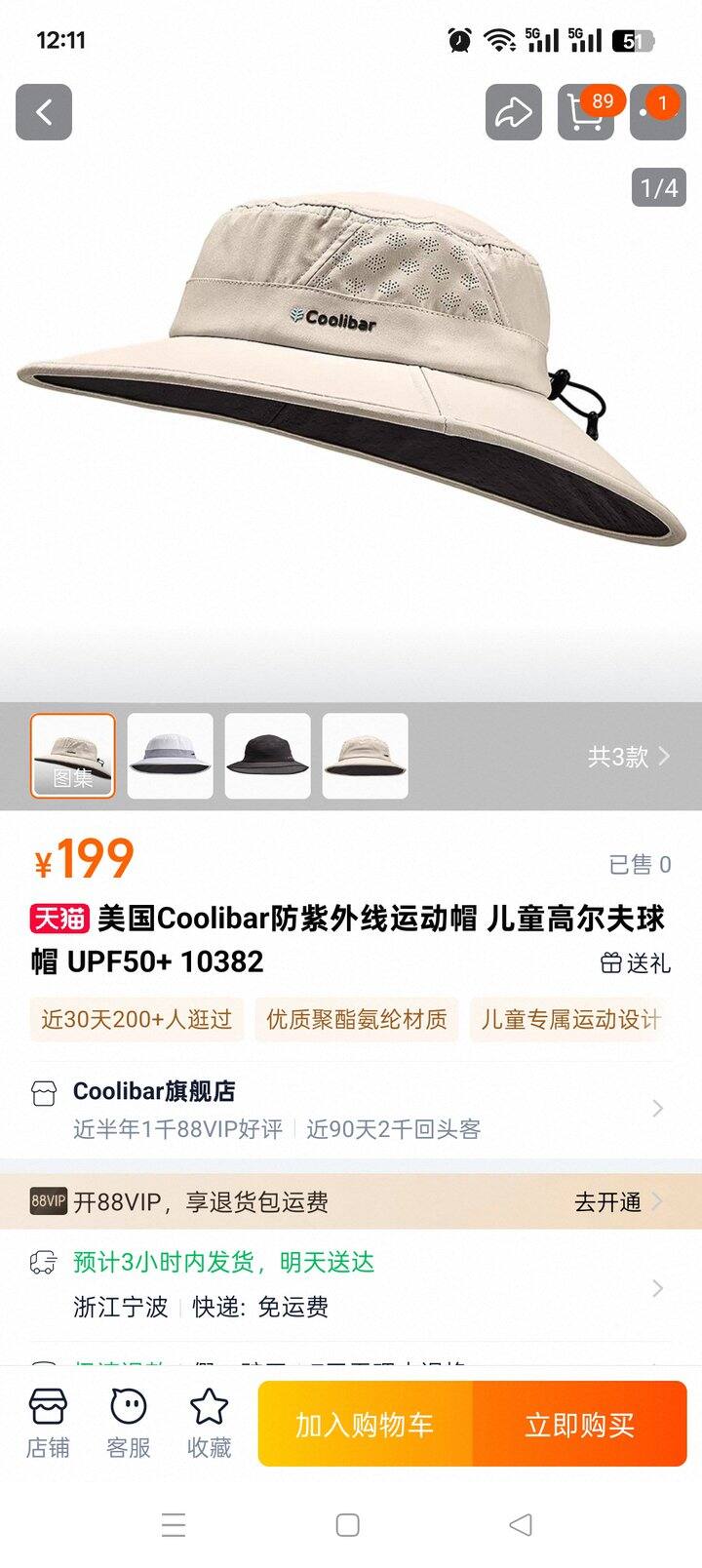 转!!!买一赠一!美国Coolibar 防紫外线帽 可折叠高尔夫帽 户外爬山 UPF50+ 防晒必备!
