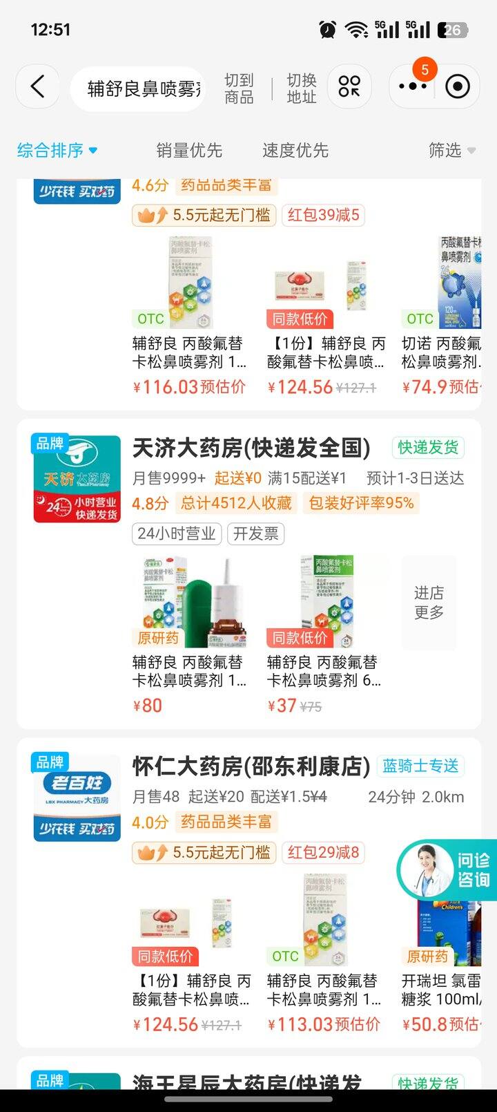 如图,同一种药,一个店卖到了100+,另一个店却只卖80,往下翻翻,还有卖50+的,这中间有什么门道吗?我应该买哪个呢?