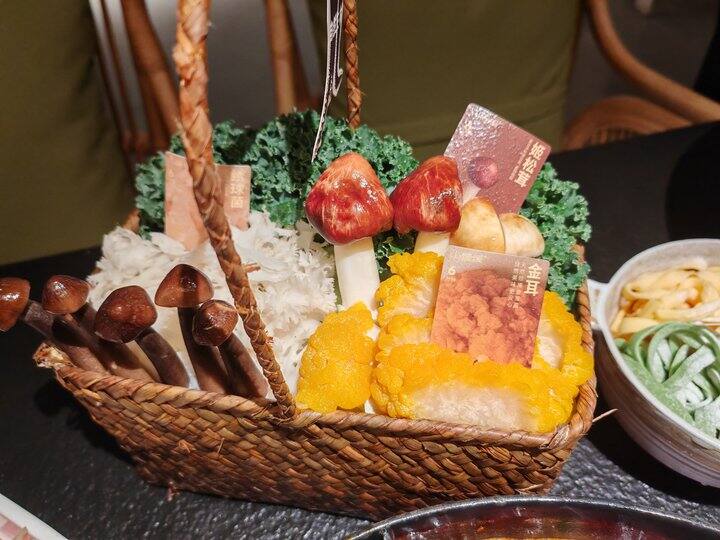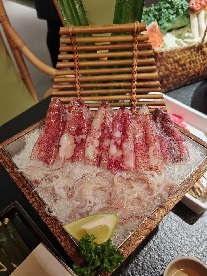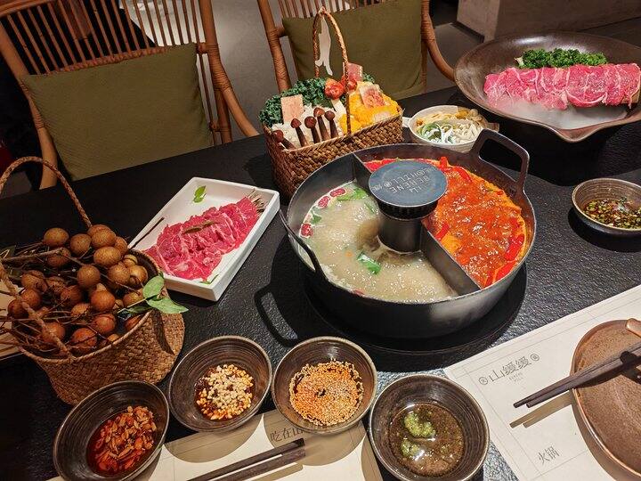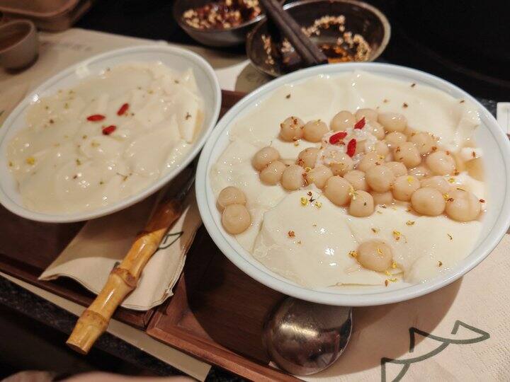 这家拍照确实很上镜,味道也是可以的,菌菇都很新鲜,牛肉也不错,点的鱿鱼也是很新鲜了。他们家的调料特别丰富,还蛮有意思的,我搞了很多调料尝。我是在dy买了67块抵100的券,每次可以用两张,然后dy还有八十几块抵扣100块的券,我一共用了三张券+两张豆花券。这一顿大概233左右。