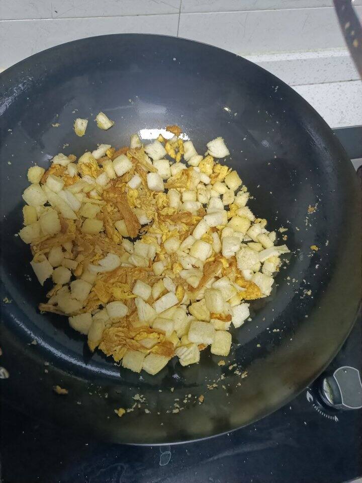 我炒的鸡蛋辣条炒馒头,好好吃,哈哈哈