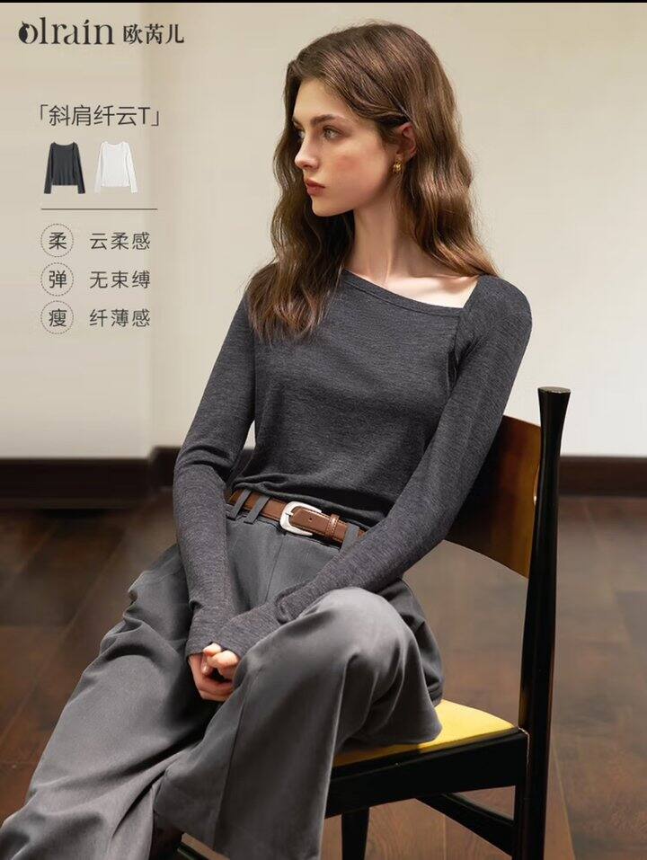 ❶ Olrain欧芮儿灰色长袖T恤https://u.jd.com/0GT6LXH