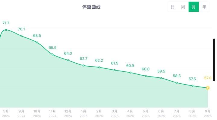 7月天热至今没有运动,工作日少吃,周末如果有聚会正常吃;