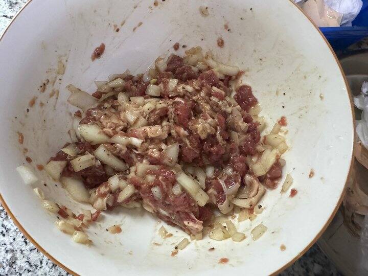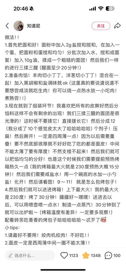 ⬇️我用的 200 克面粉,250 克羊肉,半个洋葱,就按照比例缩减。做了 7 个。我一般都会看好几个视频,综合一下,发现大差不差的就可以抄了。
