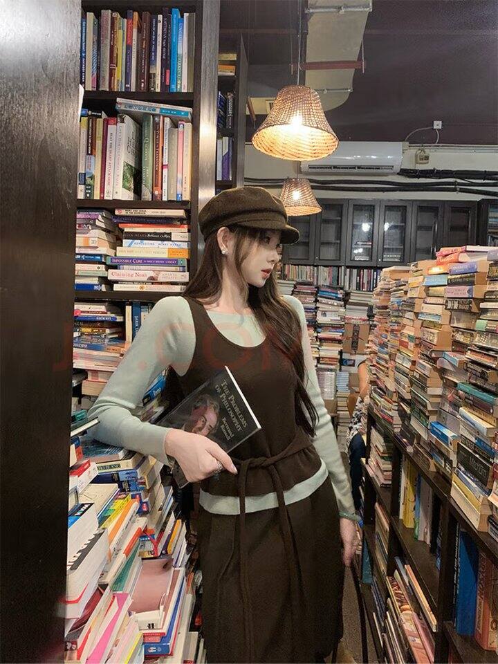 4️⃣一尧 绿撞棕色羊毛针织衫+海军领假两件杏色针织+miu系棕色半裙