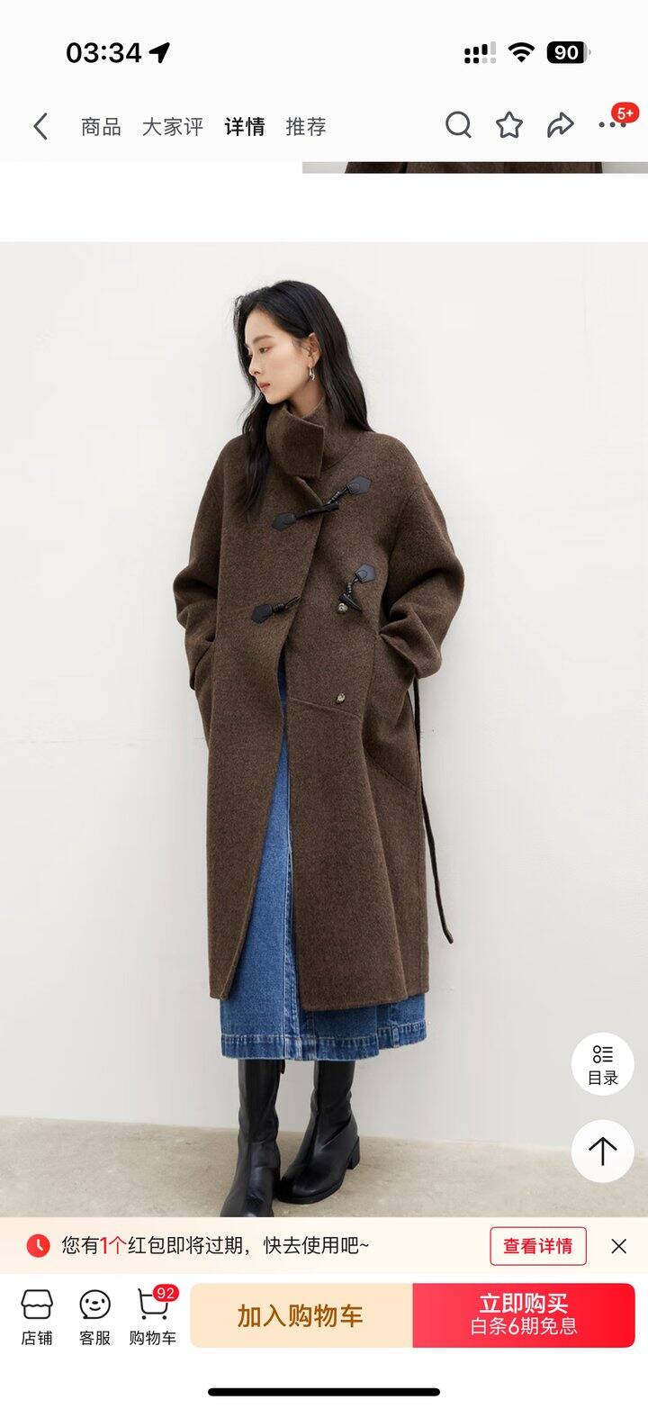 立领设计+复古牛角扣+蜡绳 很vintage的感觉大气[鹿滑稽脸]