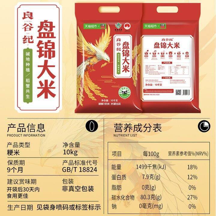 TB【51.32/返5赠金】太粮.良谷纪盘锦大米10kg,返后到手46.32,详情页进入淘金币补贴购买。非88会员贵2.7