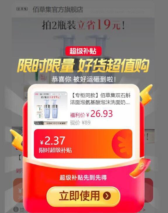 TB【24.69】佰草集.双石斛氨基酸泡沫洗面奶145ml,需叠加2.37淘礼金,非88vip贵1.35元