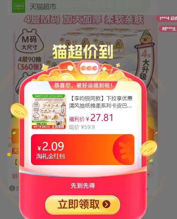 TB【22.62】清风.卡皮巴拉棉柔系列抽纸4层90抽*20包,需叠加2.09淘礼金,折1.13元/包