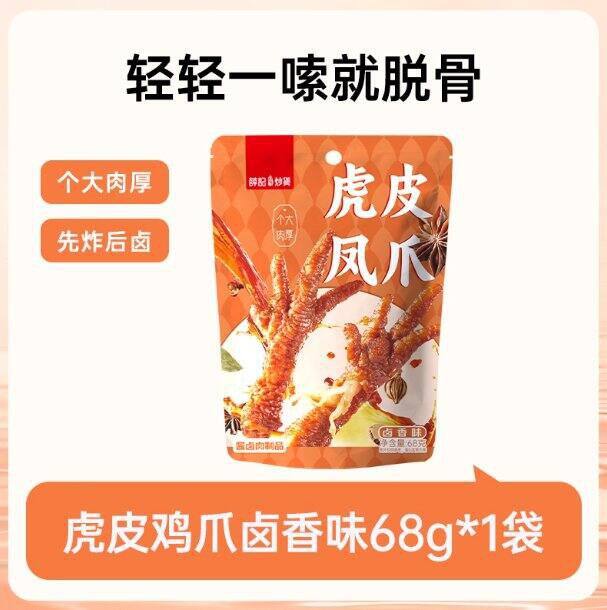 TB【25.04/拍5件】薛记炒货.虎皮凤爪,拍5件共发68g*5袋,有卤香味和香辣味可选