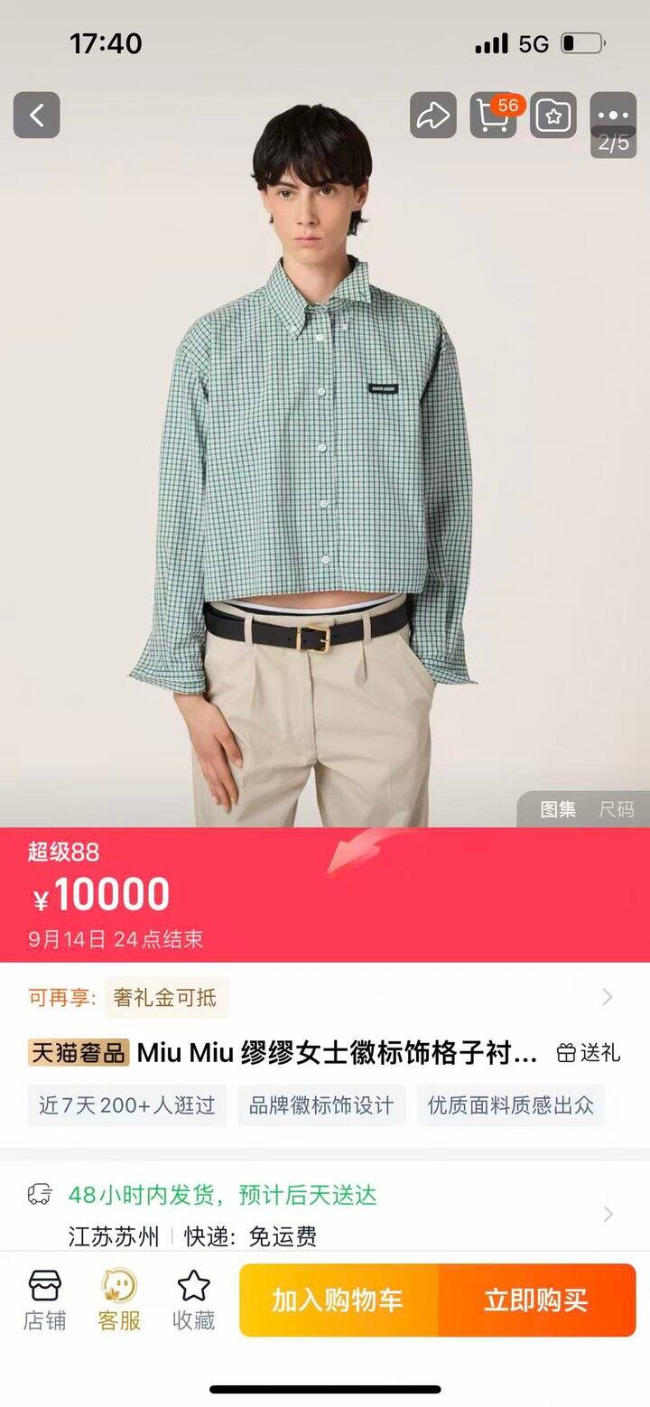 MiuMiu 格子衬衫