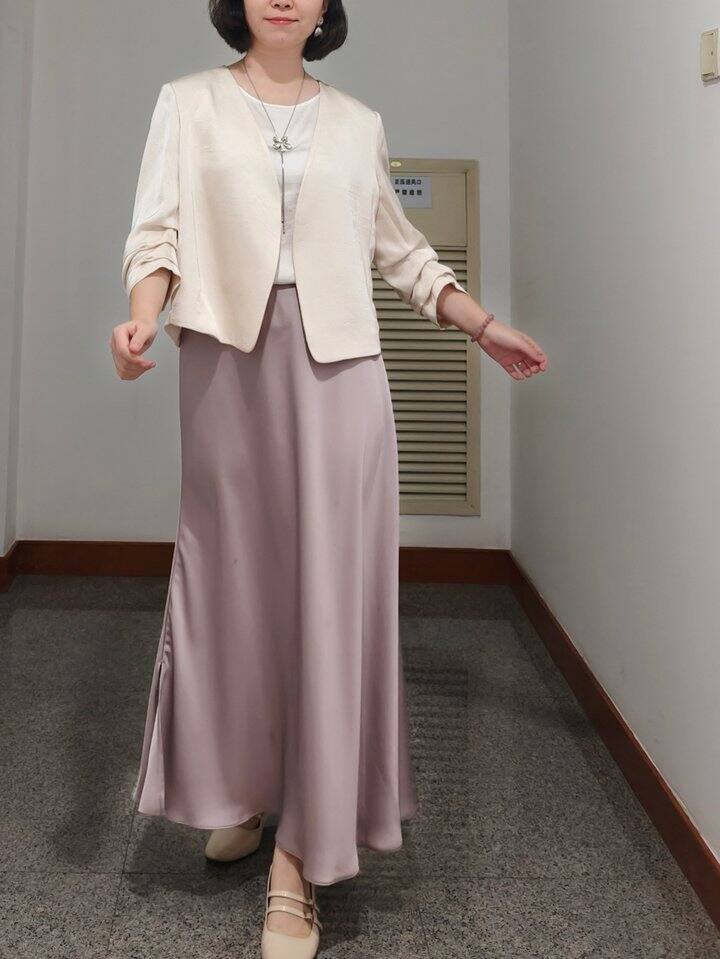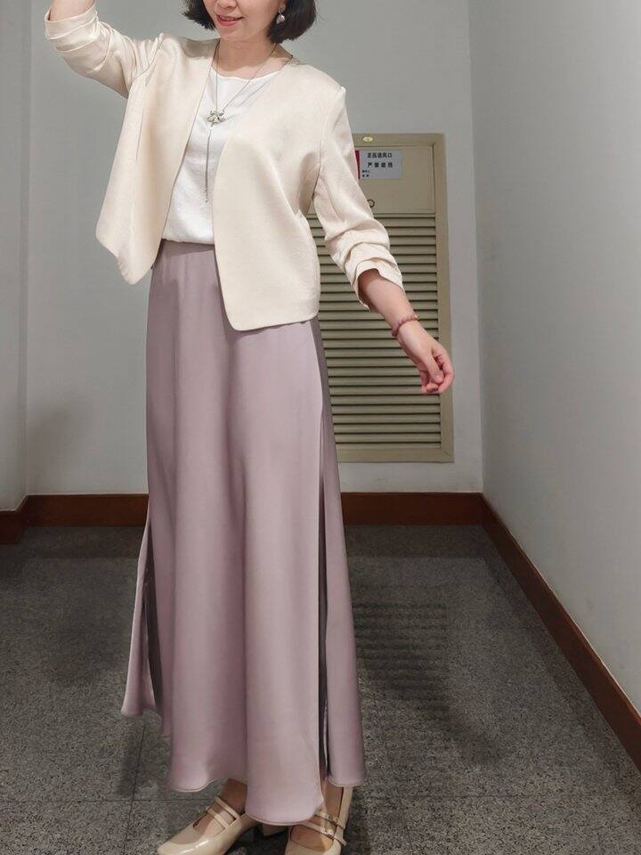 垂坠感强的面料,更容易产生明显的纵向线条,对于梨型身材也更能显瘦。