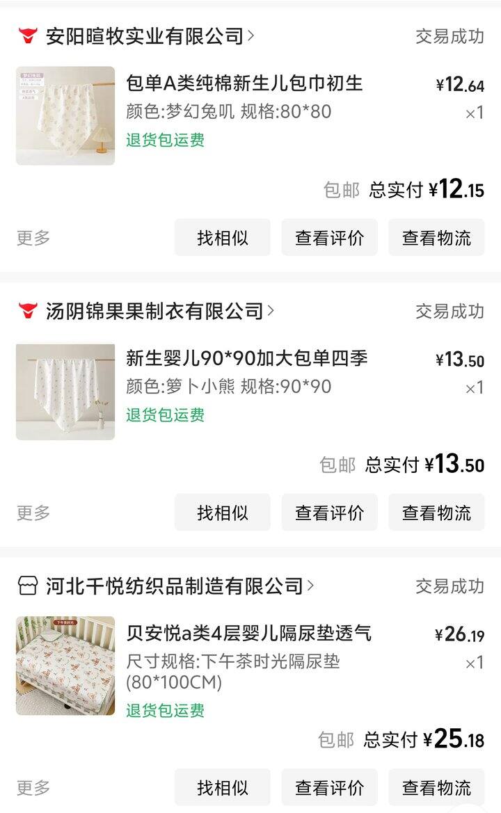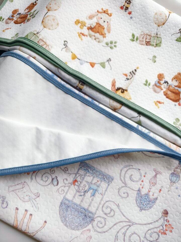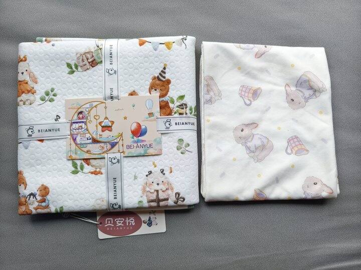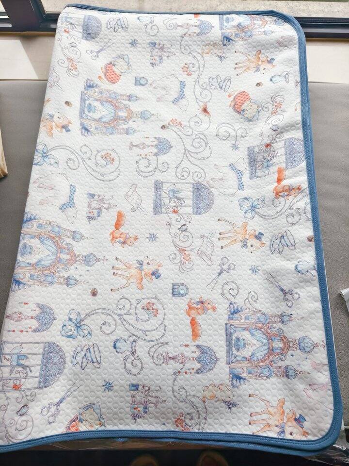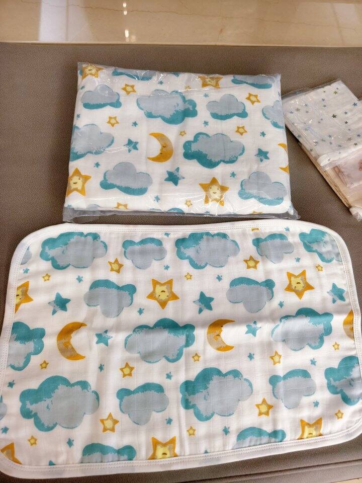 河北千悦纺织这家的隔尿垫质量很不错,缺点是只有80*100的大尺寸,放在尿布台上需要对折使用。我后来淘宝又买了一块小的隔尿垫,小月龄的时候使用更方便。