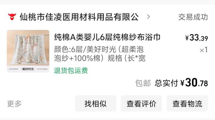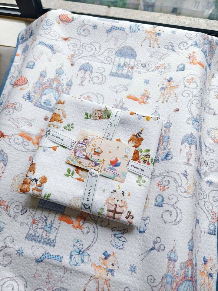 这家我看某书很多人买,我也买了一块,目前用于宝宝在飘窗上晒太阳时下面垫着。纯棉纱布,比较透气。