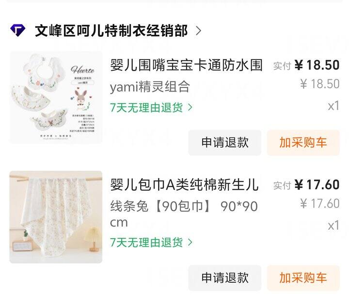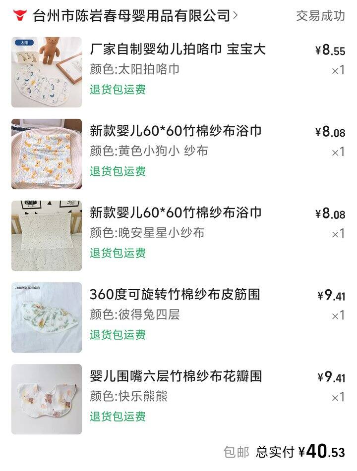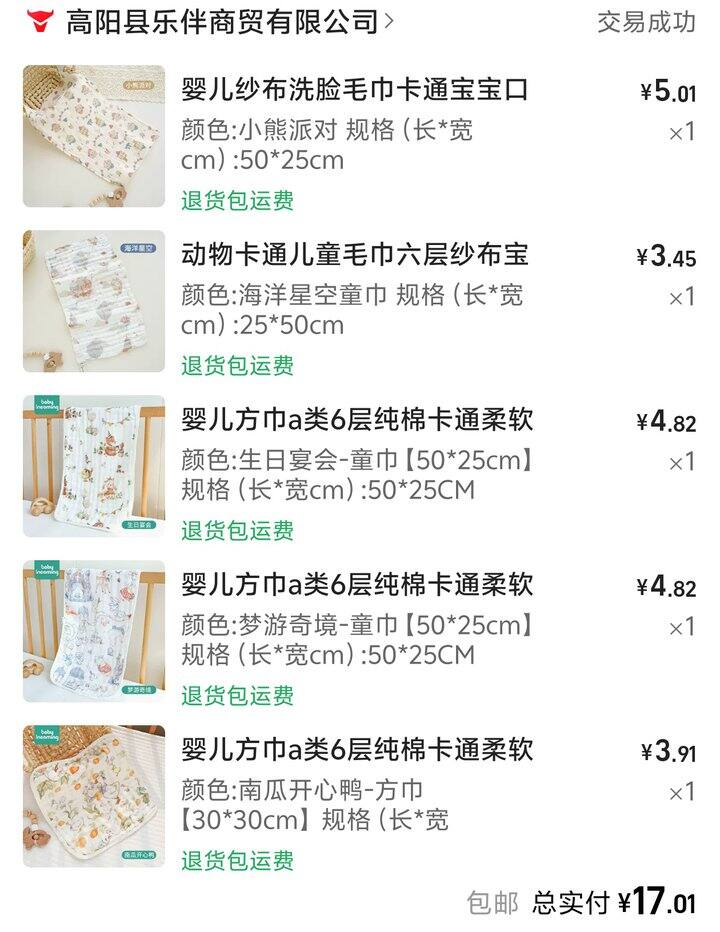 这家店的竹棉纱布比较火,强推它家3.8一条的随机纱布方巾,我买了三条,其中两条收到超级柔软,比我特意买的方巾舒适多了。