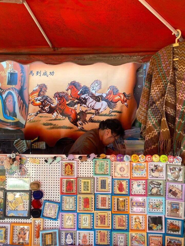 在塞上老街走了一圈,只有这一家卖,所以我又绕回来了。店主是一个蒙古族阿姨,很热情。冰箱贴颜色可以挑,内容可以定制,都是15元/个现写。