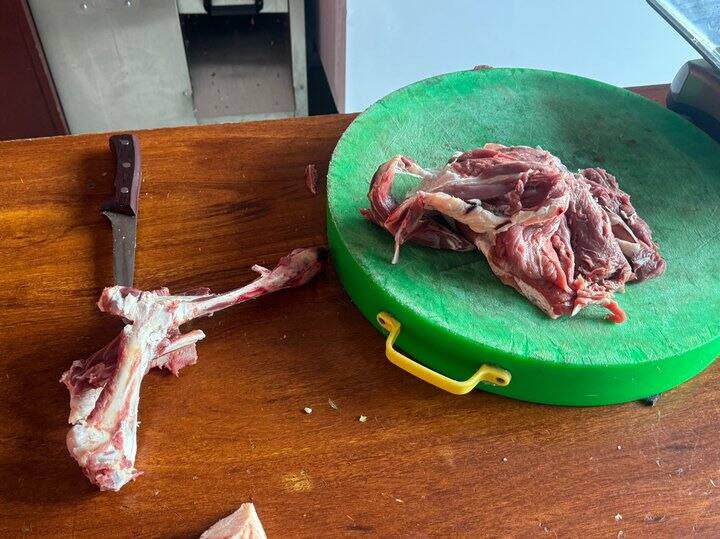 ⬇️取了 220 克肉来烤,老板有送一小块羊油,烤起来好香呀!奶香奶香的