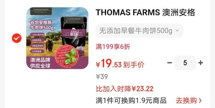 牛肉饼很久没有活动了,今天黑五活动,到手19.5/斤,这是近期低价。