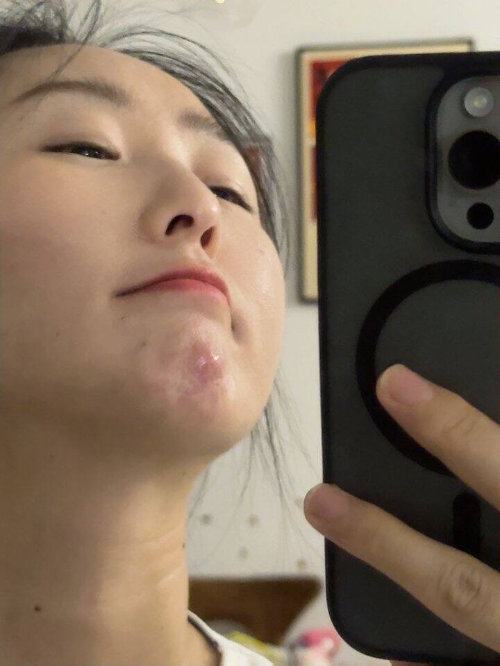 下巴感觉三四个痘根,肿起来就跟玻尿酸下巴似的[大哭]