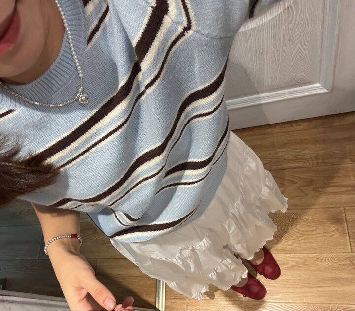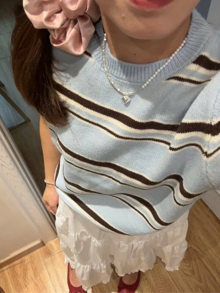 35💰蓝色短袖条纹针织衫