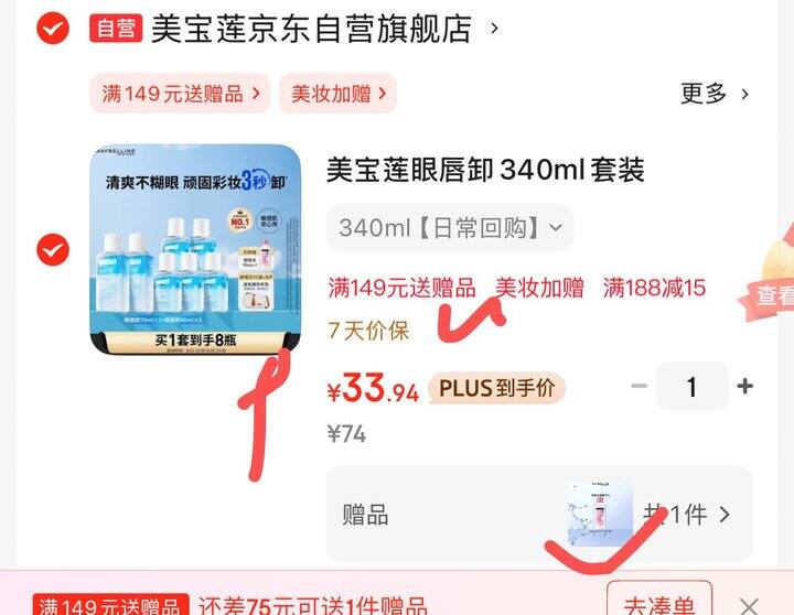 美宝莲眼唇卸340ml套装(70ml*2+40ml*5)卸妆油卸妆水