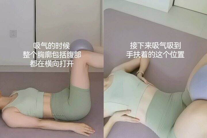 (产后运动复盘01,视频截图如下)9090腹式呼吸:激活腹横肌,有助于产后收腰