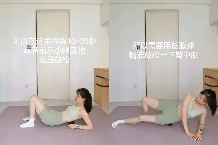 (产后运动复盘03,视频截图如下)骨盆周边肌肉松解: