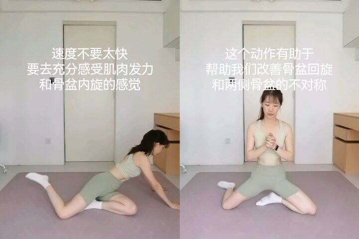 (产后运动复盘04,视频截图如下)骨盆调整:
