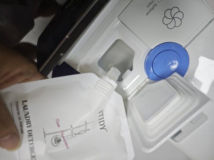 2.滚筒洗衣机洗完拿出来晾晒后,还会有淡淡的香味,好闻的,这个确实没想到,我以为本身就不浓烈,洗完晾晒后就不会留有味道了,是那种拿着衣服会闻到的,不是挂着就满室飘香的类型。我更喜欢这种[胖鹿送花花]