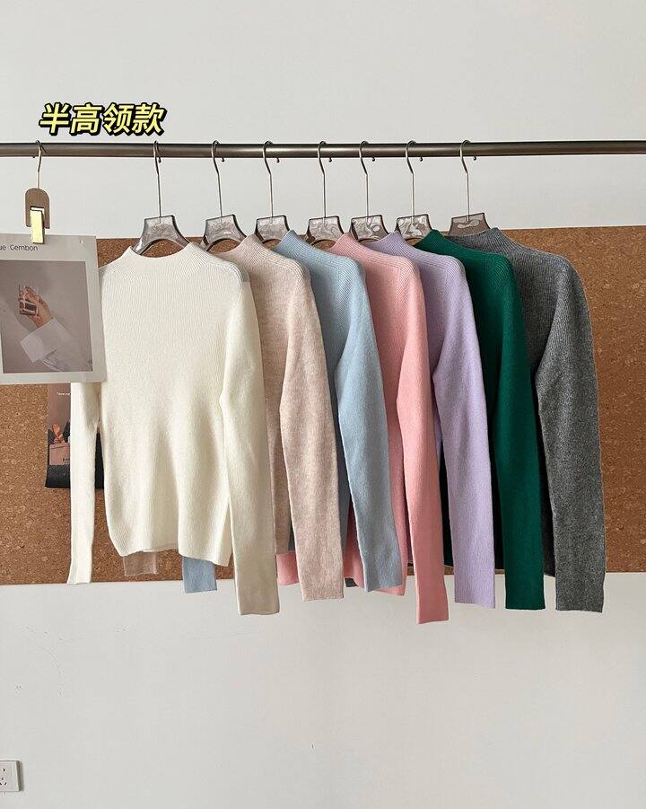 无缝一体羊毛打底衫❗修身款。 半高领/高领,可单穿可叠穿。工厂换新亏清,库存有限