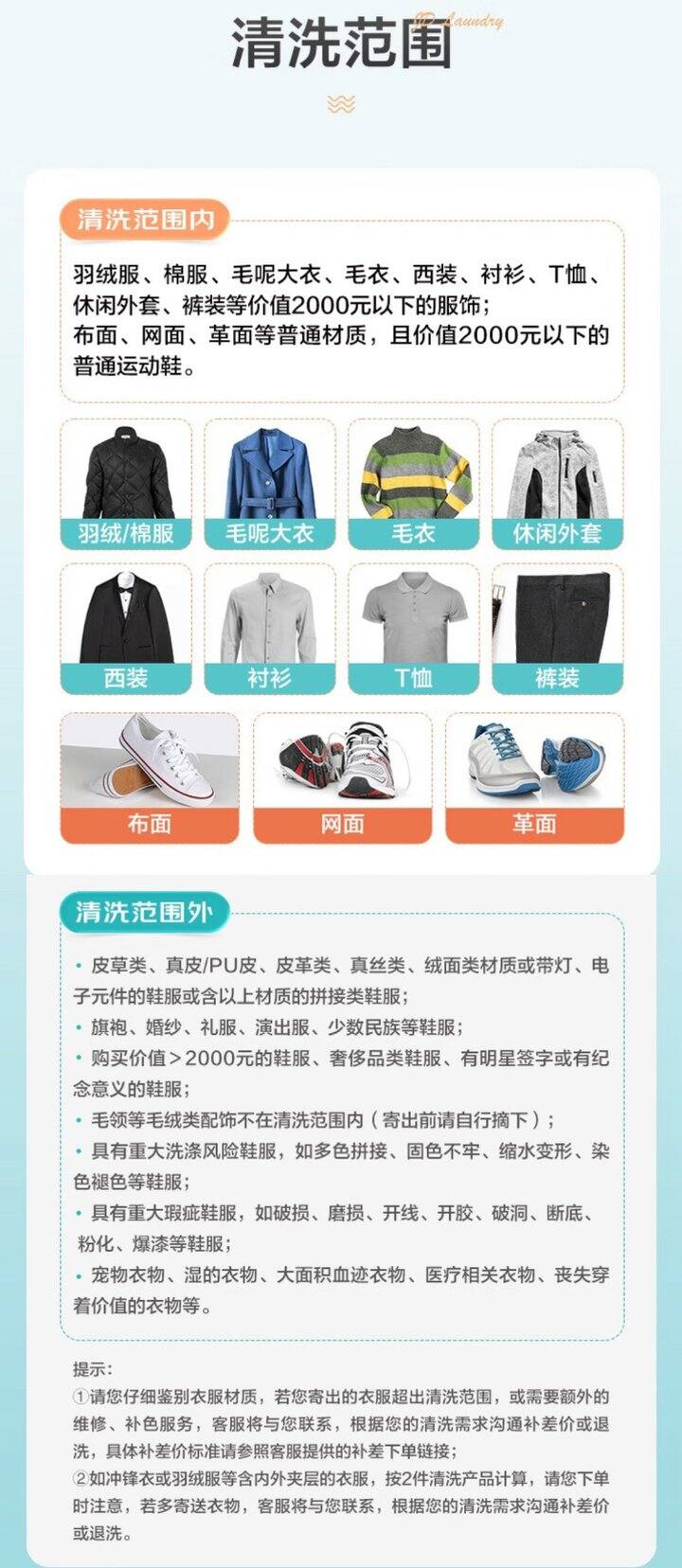 羽绒服、棉袄、大衣、西装、运动鞋任意洗两件,京东快递上门取送件,支持A地取B地送,出差旅行非常方便。30元任洗两件,可出两次。
