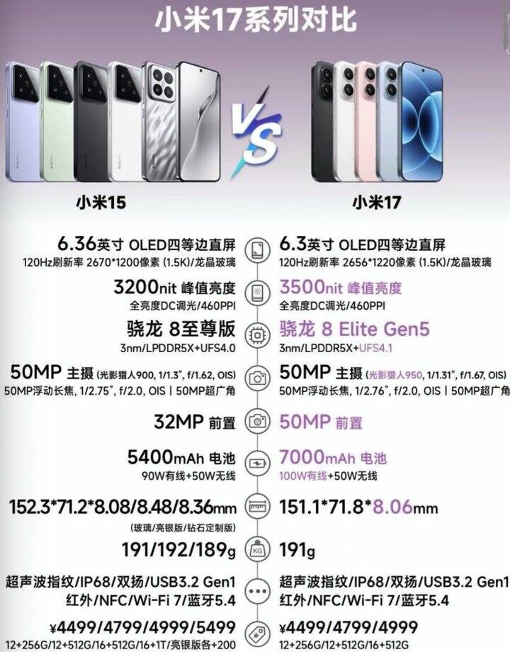 然后是小米 17 pro 和 17 pro max。