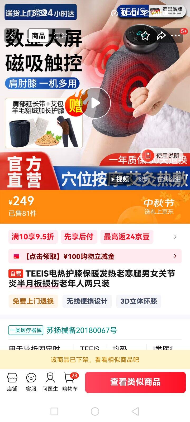 TEEIS电热护膝保暖发热老寒腿男女关节炎半月板损伤老年人两只装 120包邮