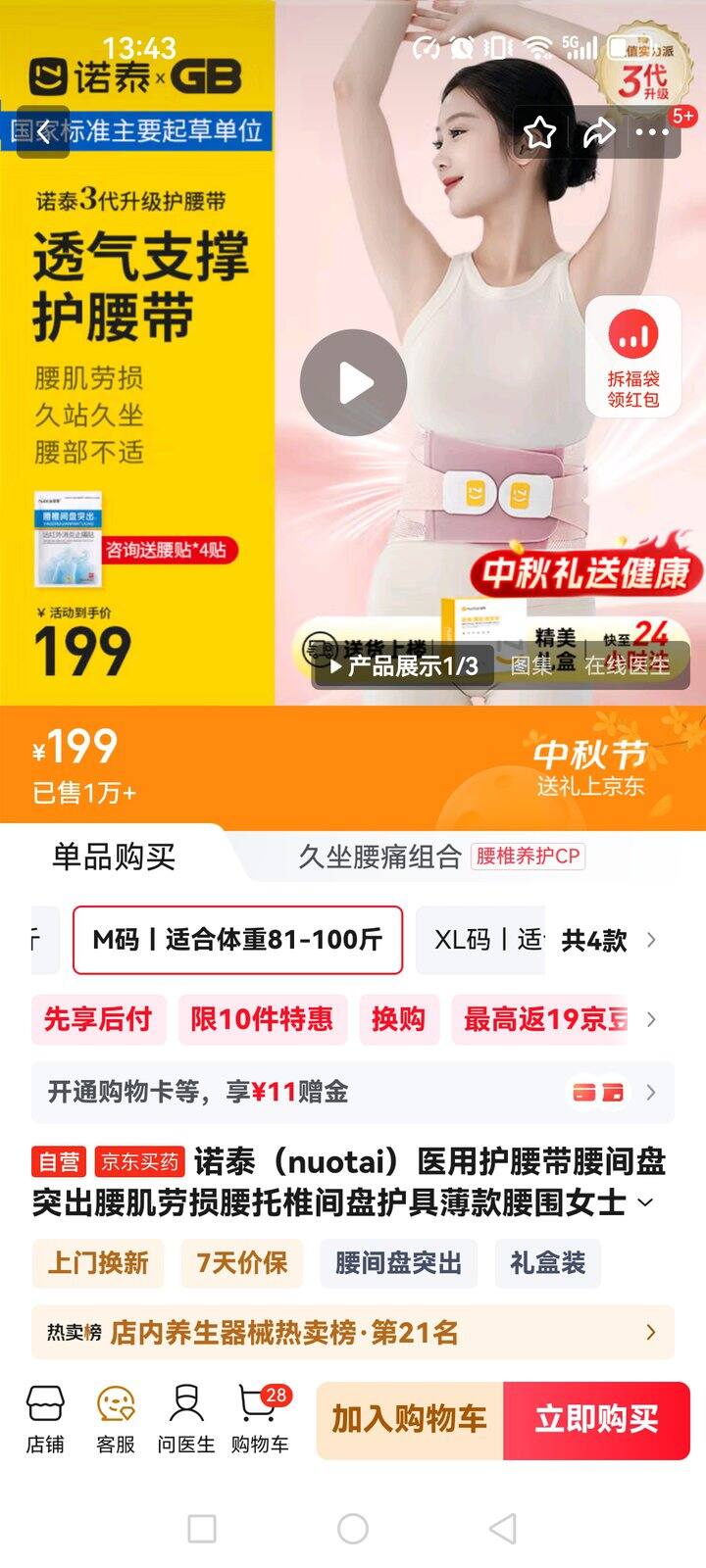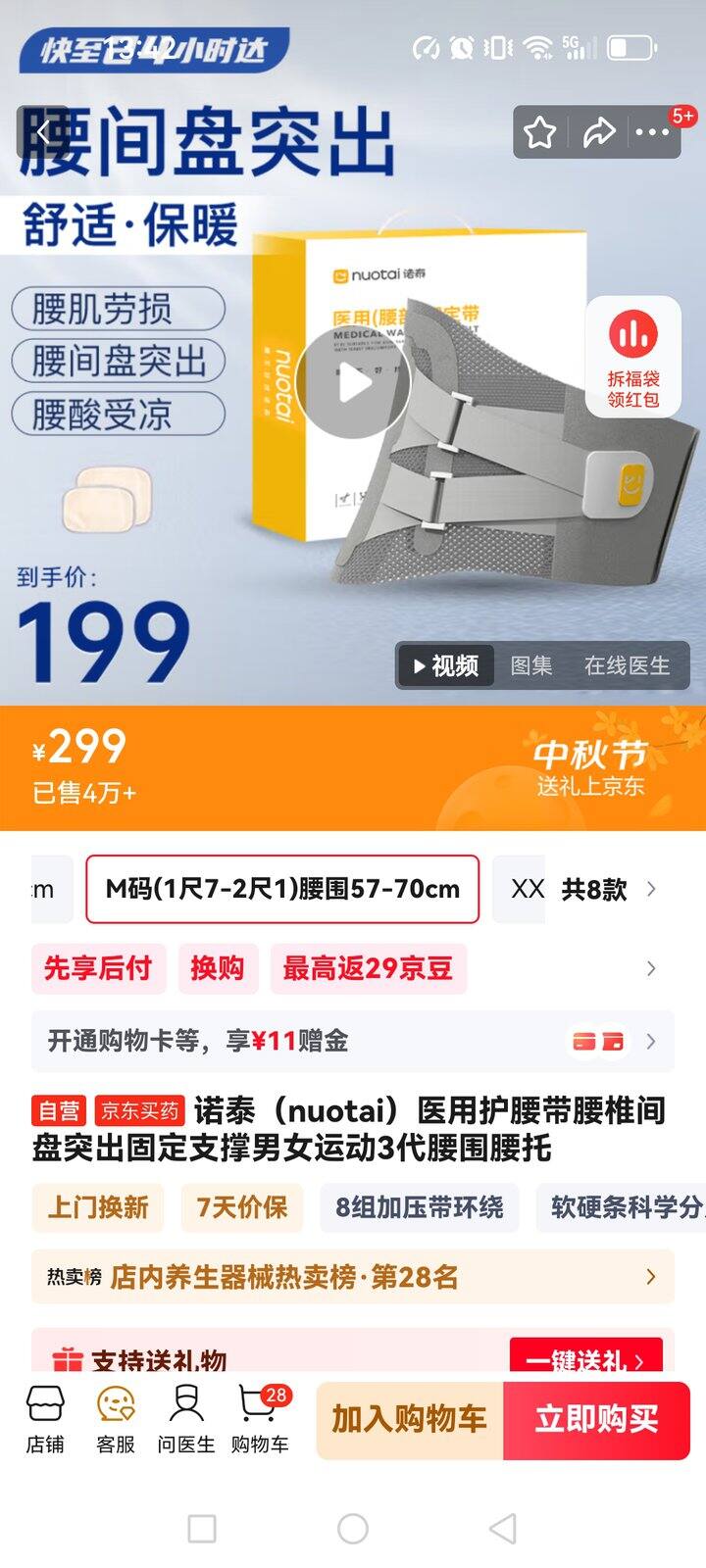 诺泰(nuotai)医用护腰带腰椎间盘突出固定支撑男女运动3代腰围腰托m码125包邮