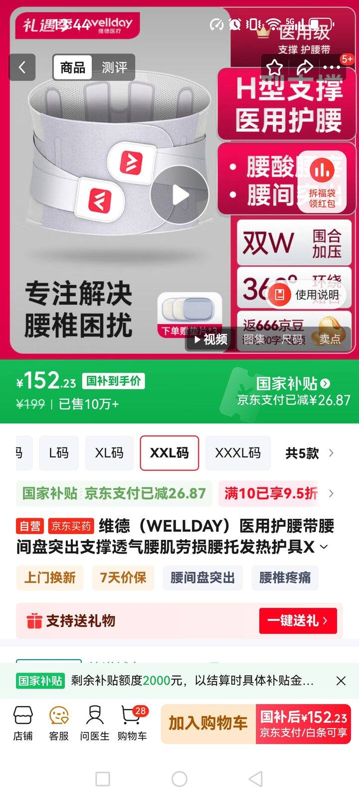 维德(WELLDAY)医用护腰带腰间盘突出支撑透气腰肌劳损腰托发热护具XXL加强款 96包邮