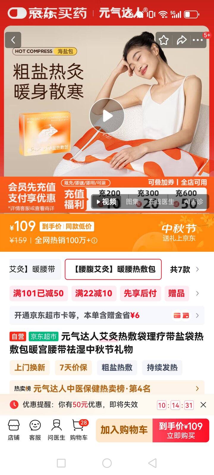 元气达人艾灸热敷袋理疗带盐袋热敷包暖宫腰带祛湿中秋节礼物 85包邮