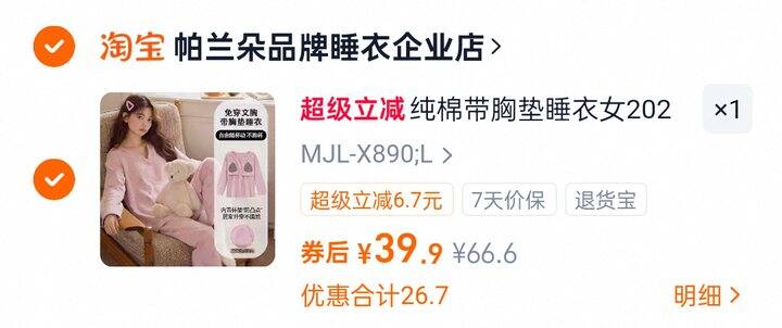 🚗【淘宝】【帕兰朵】纯棉带胸垫三件套家居服套装【💰39.9元】