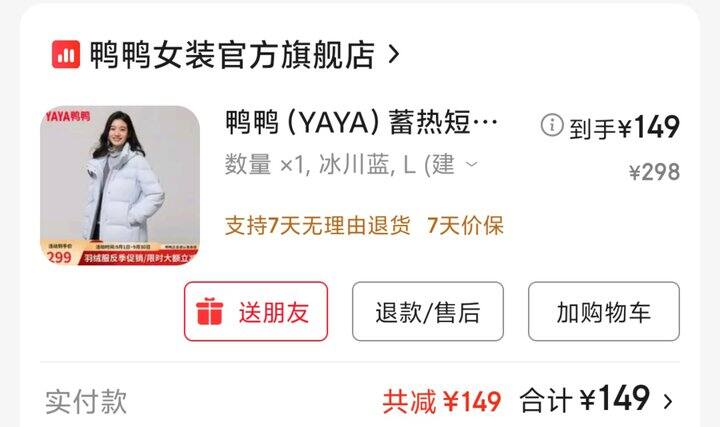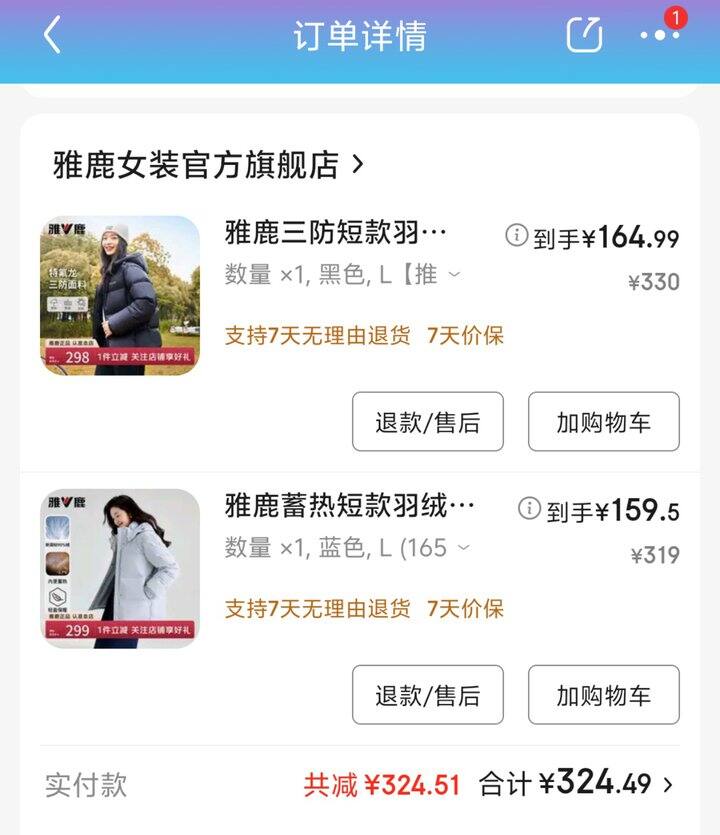 京东五折买的便宜羽绒服