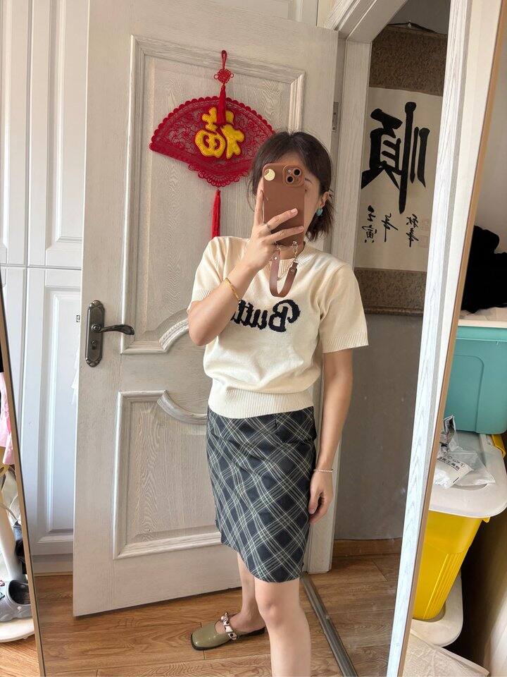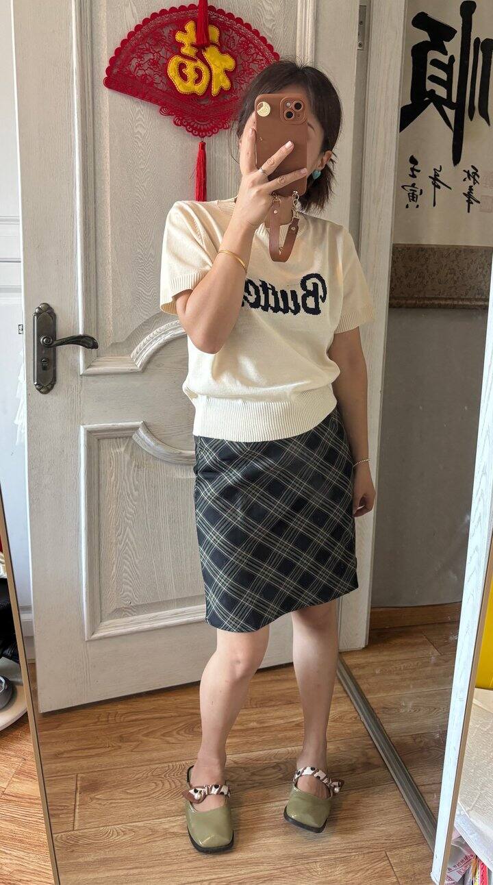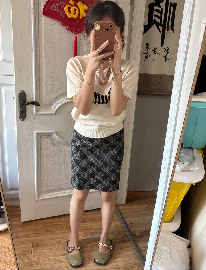这格子裙中裙好看吗