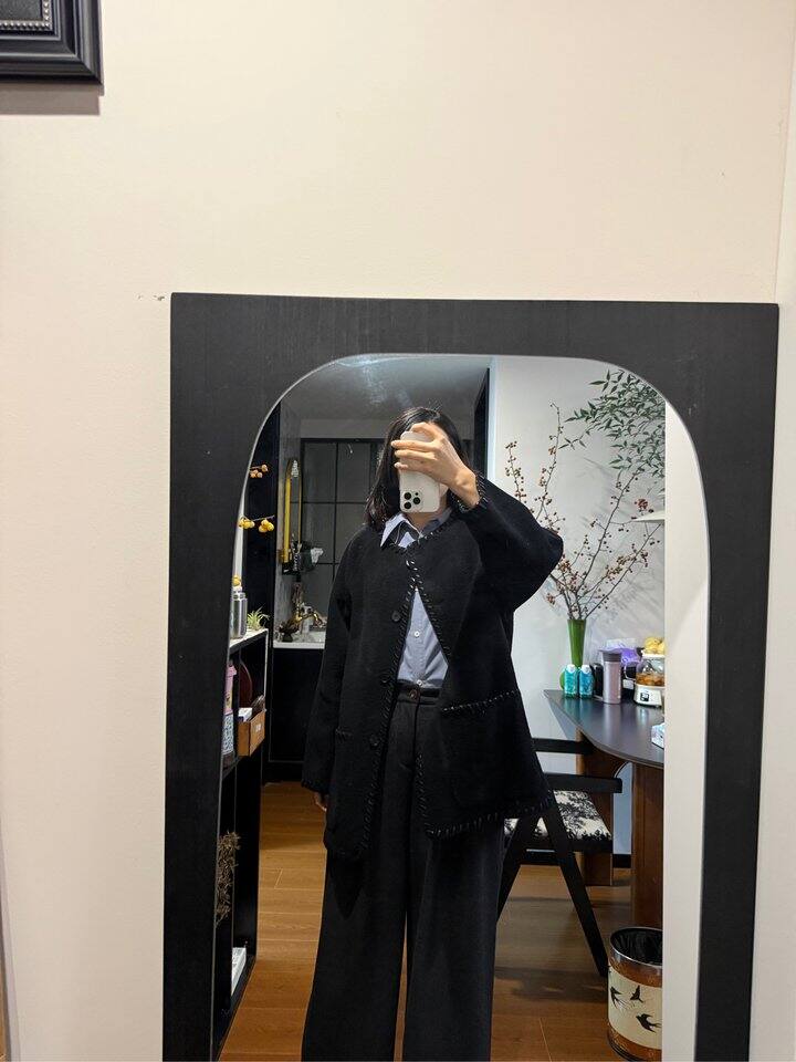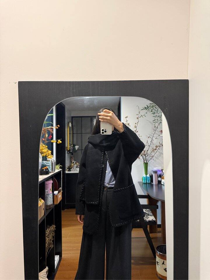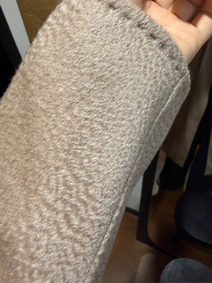 买了两件大衣,都很满意,浅色大衣比拍的好看要好看,10%羊绒,质感好好,光泽感水波纹,很不错。黑色大衣也是超级百搭,现在看旗舰店还是很贵。超值。