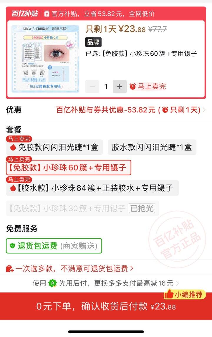心愿先生免胶假睫毛60簇到手23.88