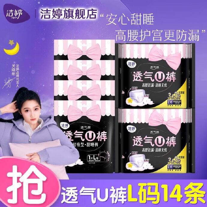 洁婷透气U裤安心裤14条装:https://u.jd.com/0rwlcJw,到手18.9,折1.35元/条,非plus会员也包邮。