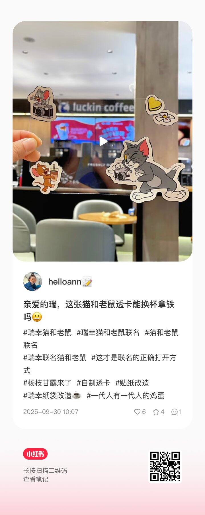 瑞幸✖️猫和老鼠🧀🧀自制透卡&票根书签