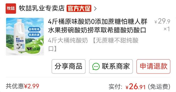 五折卷购入,家里人爱喝酸奶,这个还可以,挺大一桶的,常规偏甜口,就是好像送到的时候没有冰袋