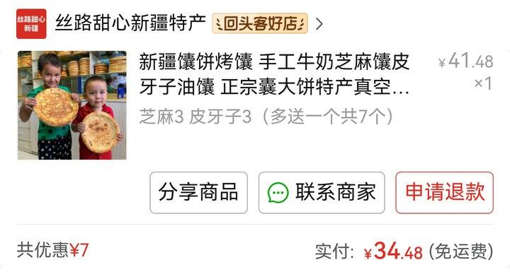 简直是吃馕大户,上两个月朋友亲戚送了很多馕,大概有三四十个,都吃完了。因为馋碳水,又买了一点点当存粮,还没吃,不晓得味道怎么样。店家抽的真空,大概十天送到的