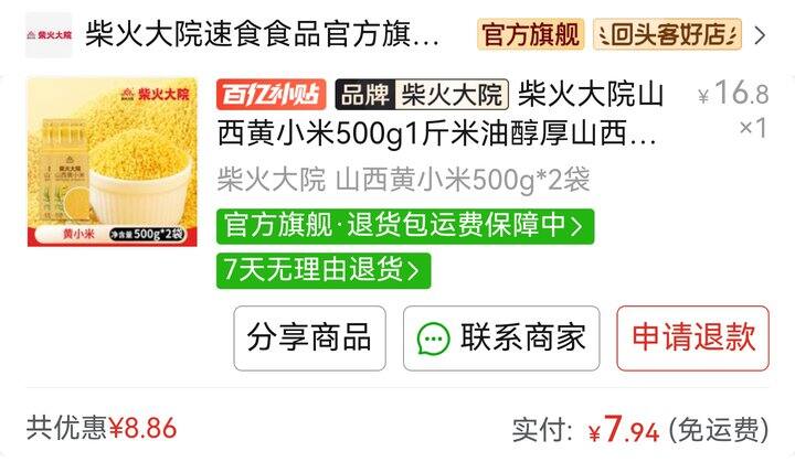五折卷购入,家里小米吃完了,煮稀饭的时候可以放一点小米,会很香