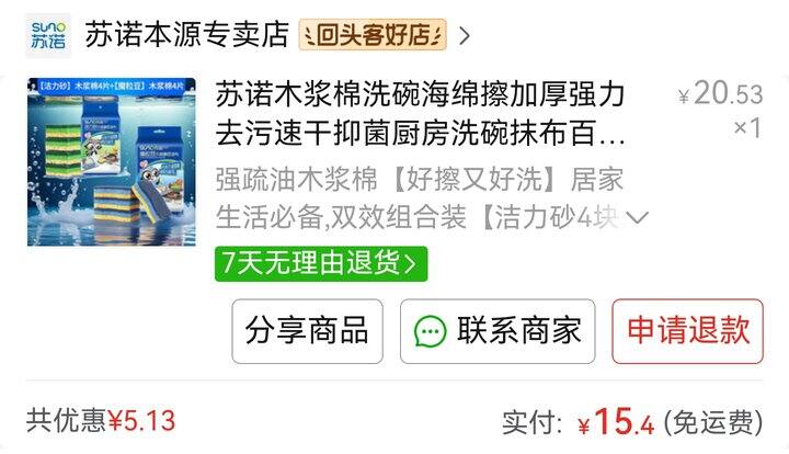 看功课说这个牌子还不错,绿色的可以刷铁锅,清洁力好,蓝色的可以刷涂层锅,日常使用,淘宝京东同款卖二十多,目前还未使用