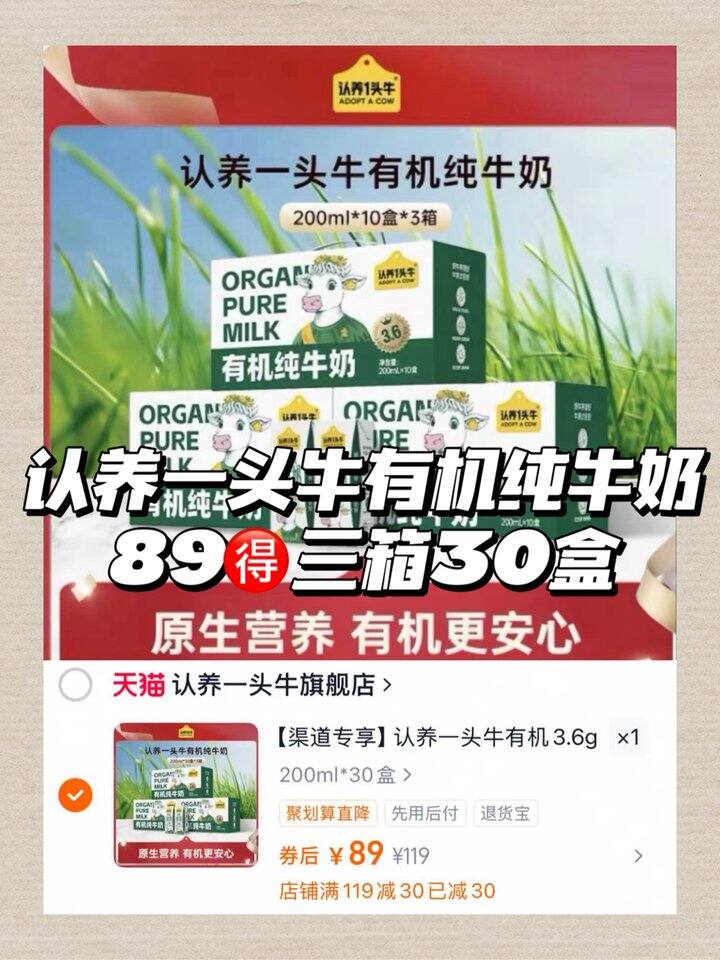 并且配料表只有有机生牛乳!好喝无添加 还没有奶腥味!超市一箱就要四十多!